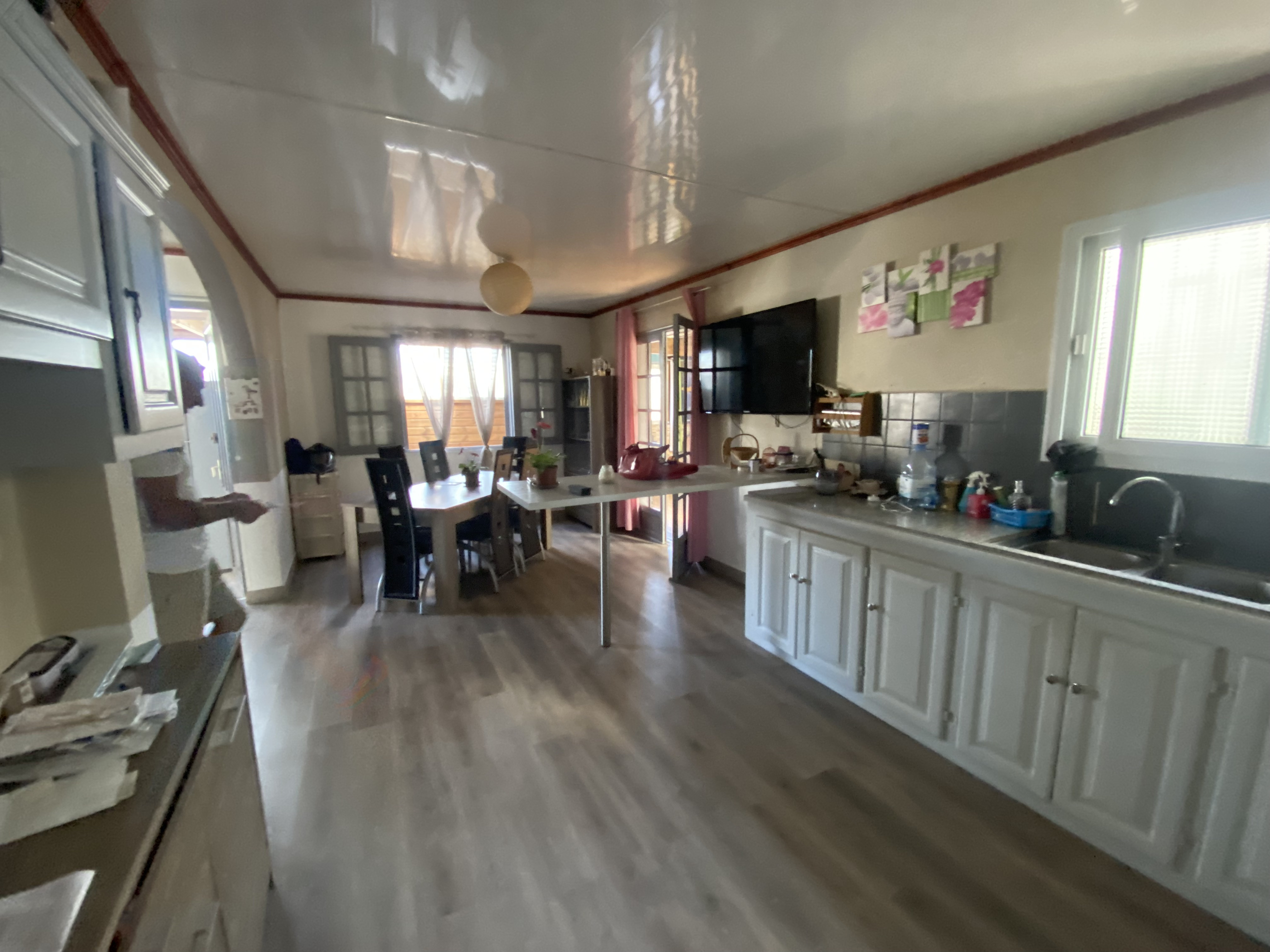 Elle se compose de : 3 chambres, une belle cuisine aménagée ouverte sur un séjour, une très grande terrasse couverte et fermée, une salle de bains, un wc un balcon et un coin bbq.